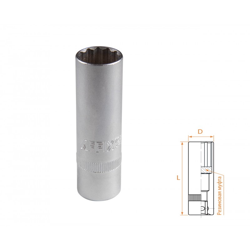 Головка свечная двенадцатигранная 1/2, 16 мм, резиновый фиксатор AFFIX AF00242016