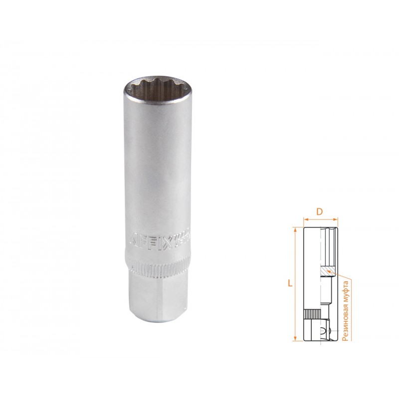 Головка свечная двенадцатигранная 3/8, 14 мм, резиновый фиксатор AFFIX AF00232014