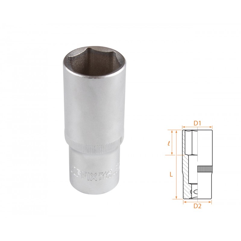 Размер 24 мм Посадочный квадрат 1/2 Рабочий профиль 6-гранный Рабочий диаметр (D1) 32,0 мм Диаметр в основании (D2) 28,1 мм Рабочая глубина (l) 33 мм Общая длина (L) 77 мм Материалы инструментальная сталь Cr-V, хром Размеры 77?32?32 мм