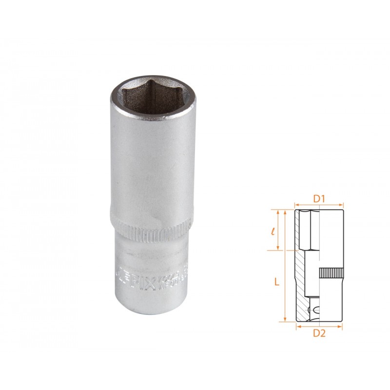 Размер 15 мм Посадочный квадрат 3/8 Рабочий профиль 6-гранный Рабочий диаметр (D1) 22,0 мм Диаметр в основании (D2) 20 мм Рабочая глубина (l) 28 мм Общая длина (L) 63 мм Материалы инструментальная сталь Cr-V, хром Размеры 63?22?22 мм