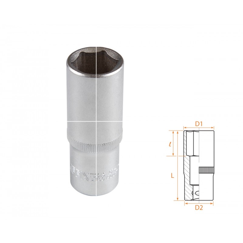 Размер 17 мм Посадочный квадрат 3/8 Рабочий профиль 6-гранный Рабочий диаметр (D1) 24,0 мм Диаметр в основании (D2) 22 мм Рабочая глубина (l) 28 мм Общая длина (L) 63 мм Материалы инструментальная сталь Cr-V, хром Размеры 63?24?24 мм