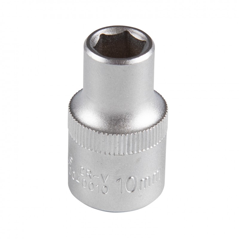 Описание и характеристики ?Размер 10 мм Посадочный квадрат 1/2 Рабочий профиль 6-гранный Рабочий диаметр (D1) 15,5 мм Диаметр в основании (D2) 22 мм Рабочая глубина (l) 15 мм Общая длина (L) 38,3 мм Материалы инструментальная сталь Cr-V,