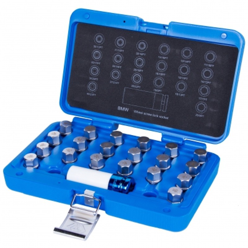 Набор насадок 21 предмет KING TONY 9BW0221 предназначен для монтажа и демонтажа секреток колесных дисков большинства моделей автомобилей BMW.Инструмент расположен в пластиковом кейсе для комфортного хранения и транспортировки. Инструмент изготовлен из хром-молибденовой стали, что придает высокую прочность и износостойкость.