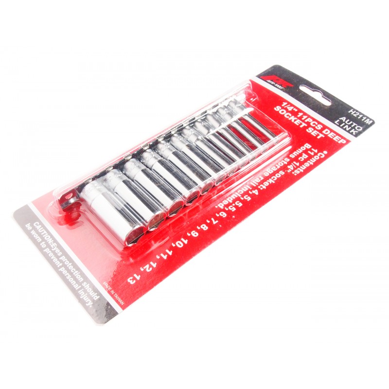 11 ед. головки 1/4": 4, 5, 5.5, 6, 7, 8, 9, 10, 11, 12, 13 мм.Длина головки 50 мм.