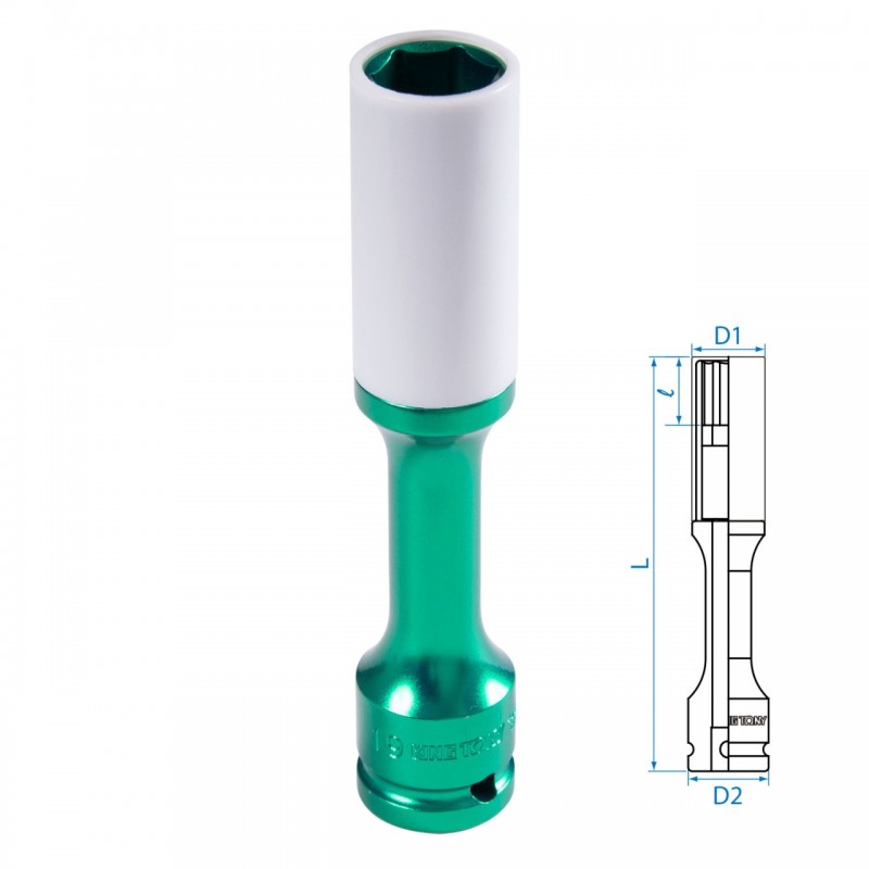 Головка торцевая ударная глубокая 1/2, 19 мм, тонкостенная, пластиковая защита KING TONY 495519MX