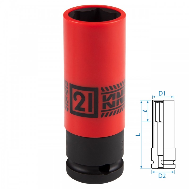 Головка торцевая ударная глубокая 1/2, 21 мм, тонкостенная, пластиковая защита KING TONY 494521M