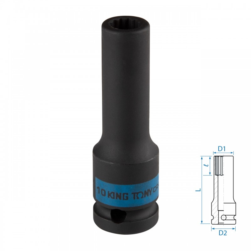 Головка торцевая ударная глубокая двенадцатигранная 1/2, 10 мм KING TONY 443010M