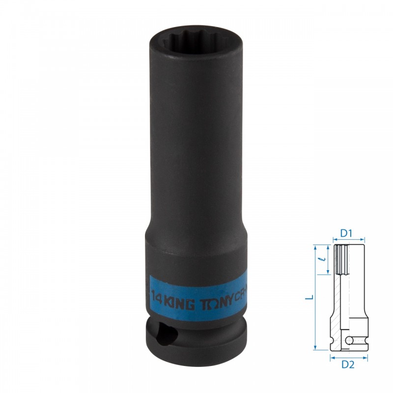 Головка торцевая ударная глубокая двенадцатигранная 1/2, 14 мм KING TONY 443014M