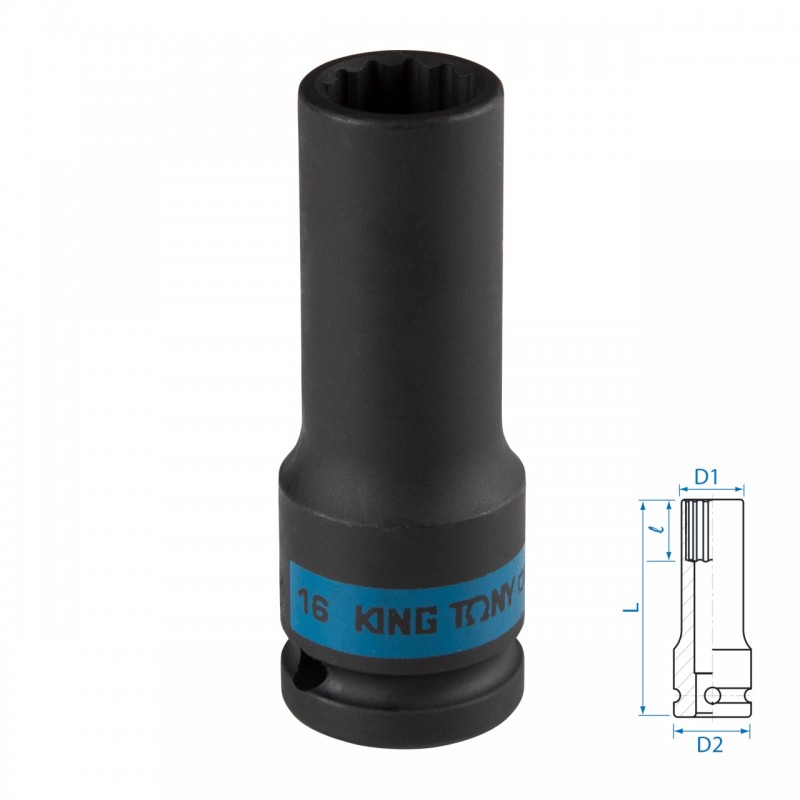 Головка торцевая ударная глубокая двенадцатигранная 1/2, 16 мм KING TONY 443016M