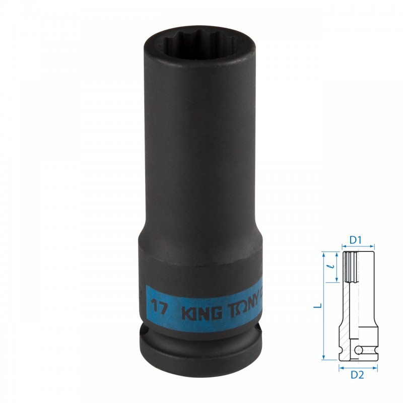 Головка торцевая ударная глубокая двенадцатигранная 1/2, 17 мм KING TONY 443017M