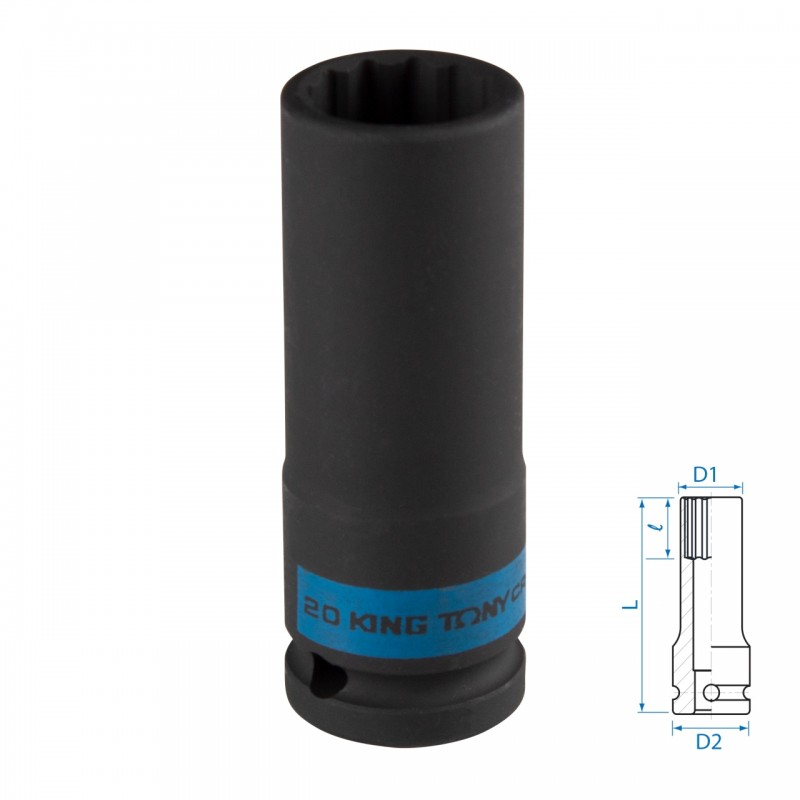 Головка торцевая ударная глубокая двенадцатигранная 1/2, 20 мм KING TONY 443020M
