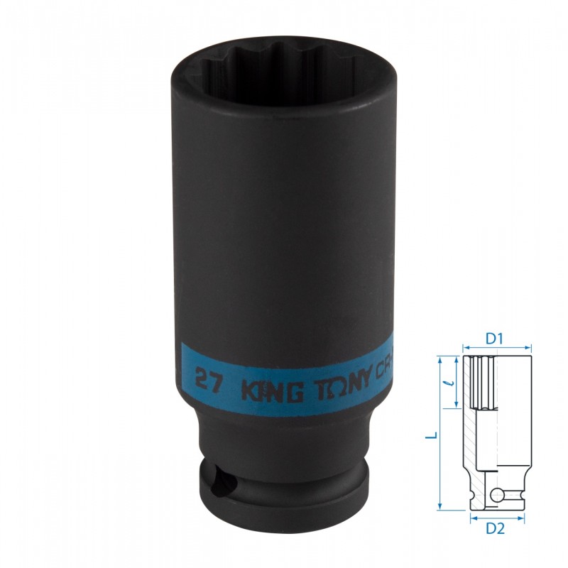 Головка торцевая ударная глубокая двенадцатигранная 1/2, 27 мм KING TONY 443027M
