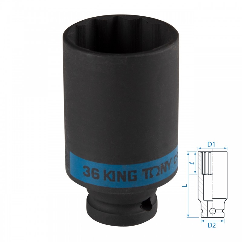 Головка торцевая ударная глубокая двенадцатигранная 1/2, 36 мм KING TONY 443036M