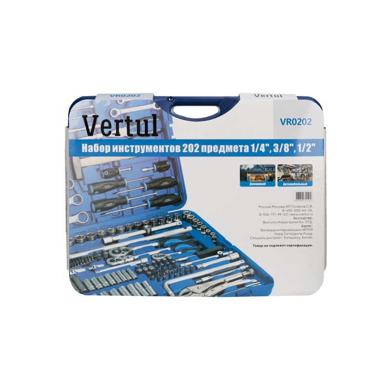 Набор инструментов Vertul 202 предмета 1/4″, 3/8″ 1/2″ VR0202