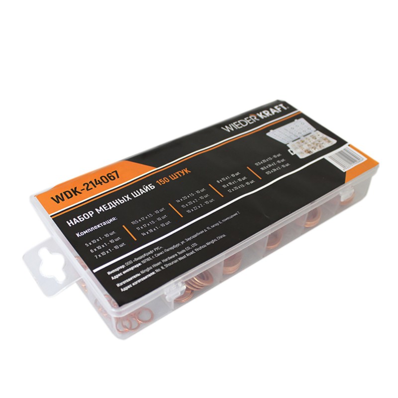 Набор медных шайб, 15 типоразмеров, 150 шт WDK-214067