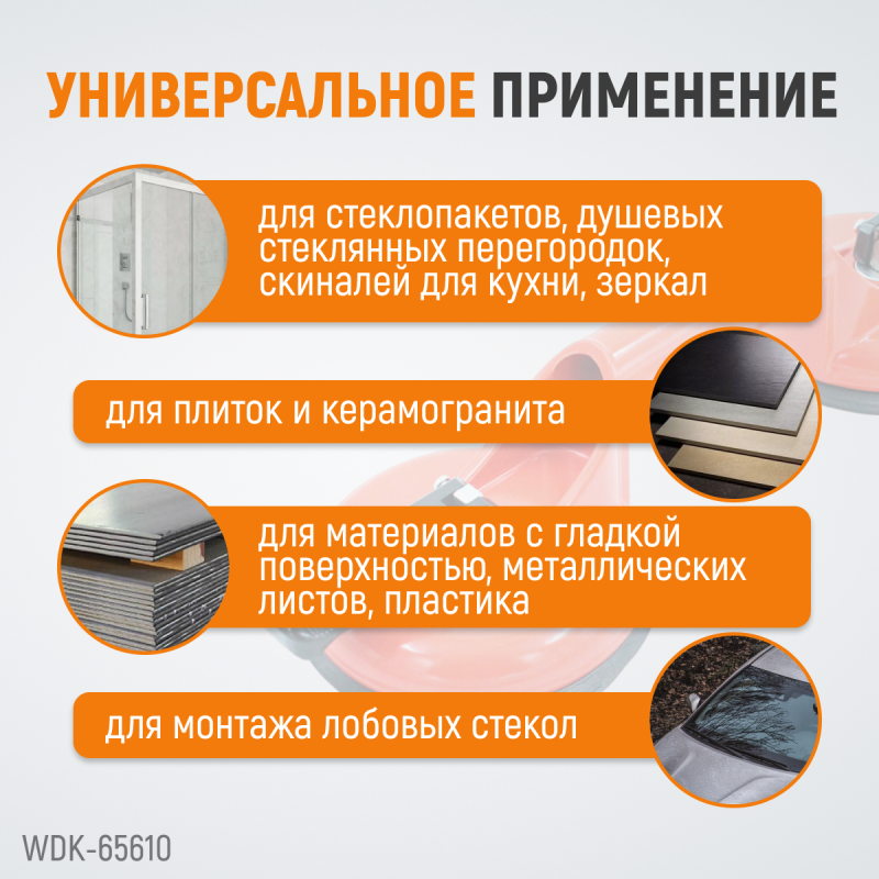 Вакуумный захват стекол, металлический корпус, двойная присоска WDK-65610