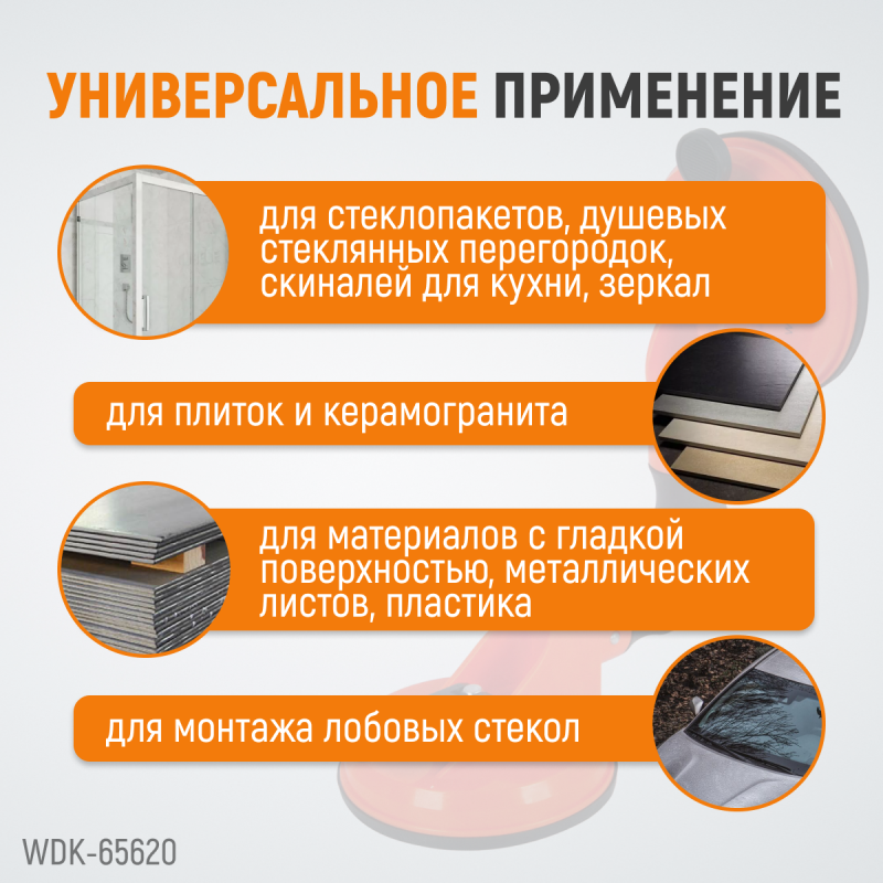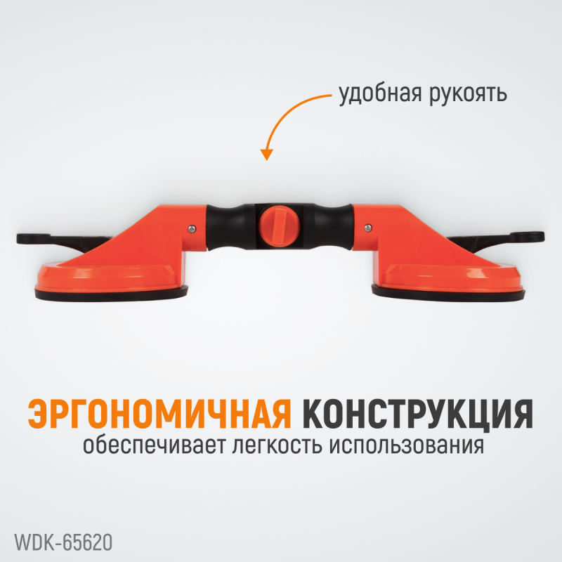 Стеклодомкрат оснащен двумя присосками, что обеспечивает более надежное и стабильное сцепление с поверхностью стекла или зеркала. Это позволяет увеличить безопасность и предотвратить падение предметов при транспортировке.