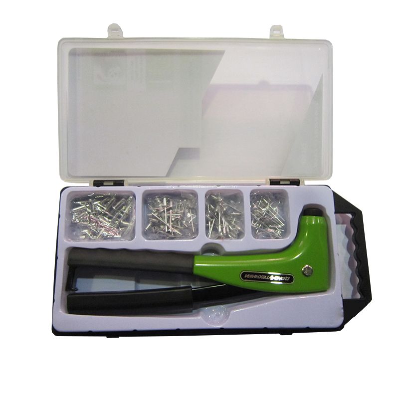 Ручной заклепочник 450152 используется для быстрого и легкого соединения металлических листов, тонкостенных профилей и других элементов металлоконструкций.Для надежного и комфортного расположения в руке, инструмент оснащен эргономичными резиновыми рукоятками. Заклепочник имеет универсальную насадку 4-в-1, не требующую замены при смене диаметра заклепки. В комплекте поставляется алюминиевые заклепки 2,4; 3,0; 3,2; 3,8 по 20 шт. каждого размера.