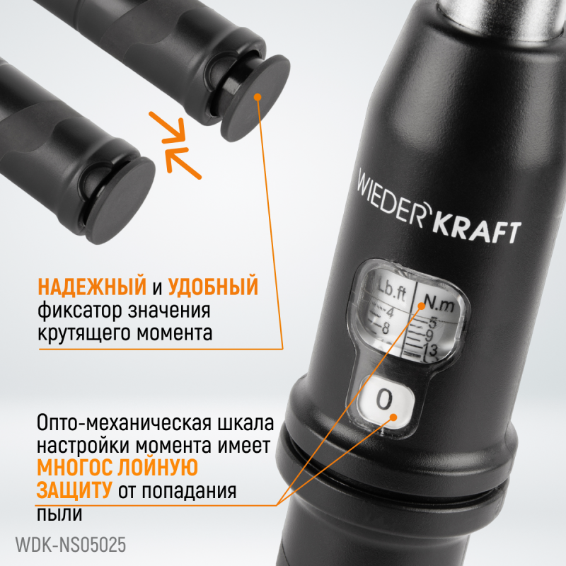 Динамометрический ключ WDK-NS05025 используется для работы в направлении часовой стрелки (CW).