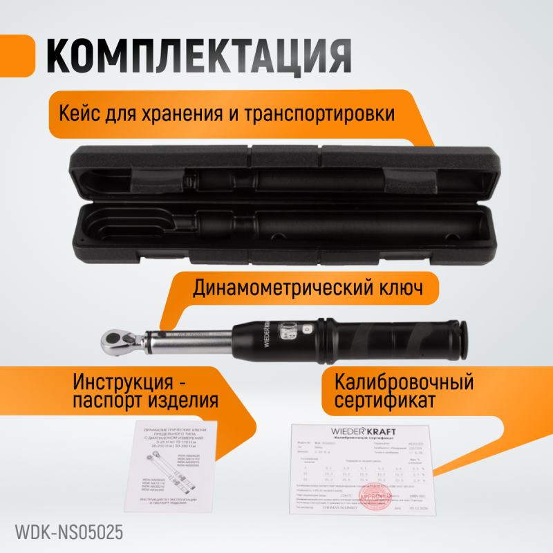Динамометрический ключ 5-25 Нм, реверсивная трещотка с приводным квадратом 1/4 WDK-NS05025
