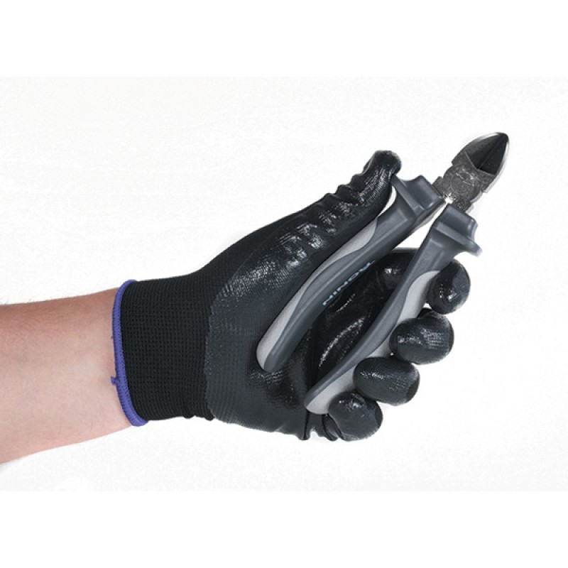 Ладонь и пальцы облиты нитрилом, имеющим специальную текстуру на кончиках пальцев, предназначены для надежной защиты рук от механических травм, для выполнения демонтажных, сборочных, шлифовальных и других работ.