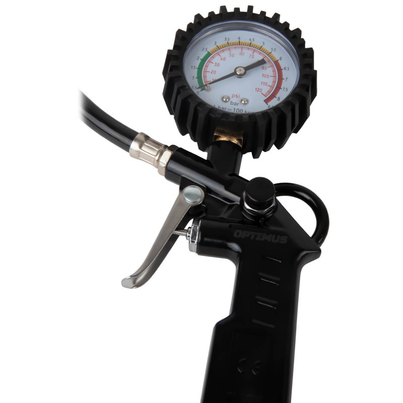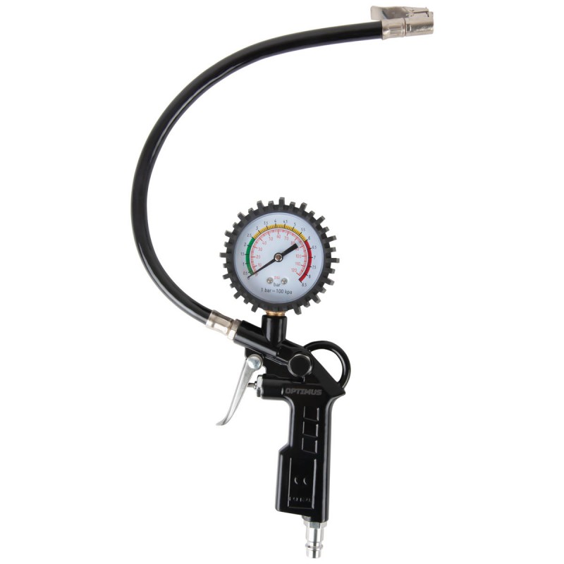 Пистолет для подкачки шин с аналоговым манометром Optimus 63 мм, 8 бар OPT-PI1020 предназначен для контроля давления в шинах, подкачки колес при низком значении давления и сброса при избыточном. Возможно использование при работе с легковым, мото и легким грузовым транспортом. Шкала манометра имеет цветовую кодировку диапазона.