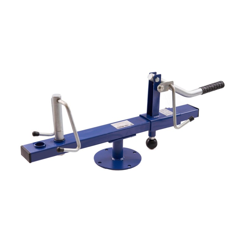 Модель позволяет надежно фиксировать шину с разведенными бортами для удобства ремонта ее внутренней поверхности. Жесткая конструкция приспособления имеет значительный запас прочности.