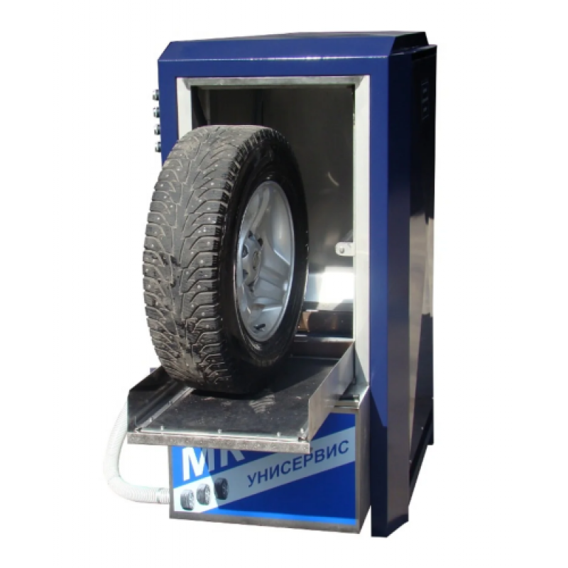 Автоматич. мойка колеса легковых автомобилей и внедорожников , с опцией подвижных распылителей, цикл 30-90 сек./колесо, 5 квт, обдув колеса, размеры 1,23 х 0,77 х 1,44 м с увеличенной шириной колеса до 350 мм.