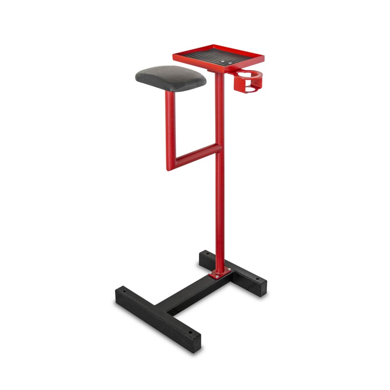 Стойка имеет специальное крепление под пистолет для ошиповки и лоток для шипов. В лотке, также можно разместить измеритель глубины протектора шин, бокорезы и другие подручные средства.