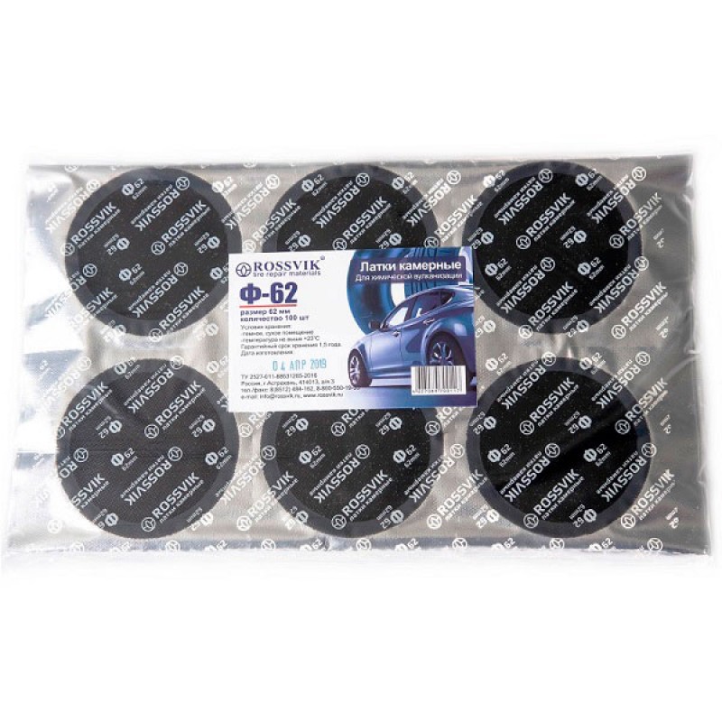 Пластичный химический слой латки идеально заполняет неровности ремонтируемой поверхности и под действием клея-активатора Rossvik в процессе “холодной вулканизации” латка становится прочнее самой камеры.