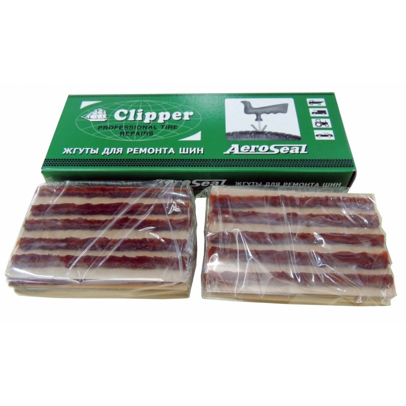 Шнуровые жгуты являются самыми популярными материалами для ремонта проколов бескамерных шин. Изготовленные из синтетического корда, пропитанного бутилкаучуком, эти жгуты очень прочны, что позволяет легко устанавливать их в любых типах шин. Коричневые жгуты не требуют обязательного применения цемента для установки. Ремонт проколов рекомендуется проводить после полного осмотра шины. В дорожных условиях возможен ремонт прокола без снятия шины с диска, а также использование нескольких жгутов для аварийного ремонта проколов более 6 мм.