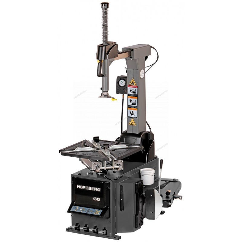 Шиномонтажный автоматический двухскоростной станок NORDBERG 4642(G) - профессиональное оборудование для автосервисов, СТО, шиномонтажных мастерских.ФУНКЦИОНАЛПредназначен для монтажа и демонтажа шины, а также накачки всех видов камерных и бескамерных шин.ПРЕИМУЩЕСТВАПодкачка осуществляется нажатием на педальДве скорости вращения стола значительно увеличивают скорость выполнения работРабочий стол с накладкамиБольшой манометр на колоннеСкорость работы поворотного стола: 13 оборотов в минуту на второй скоростиМаксимальная жесткость конструкции и зажимного столаОтбортовщик с регулировкой в двух положенияхУдобная полочка для инструментовКОМПЛЕКТАЦИЯФильтр-лубрикаторПистолет для подкачкиПластиковые вставки защиты легкосплавных дисковЗащитные пластиковые колпачки - 4 шт.Держатель емкостиРезиновая защитаМонтировкаВозможность обслуживать колеса мотоциклов и квадроциклов. Для этого необходимы опции:Головка монтажная МОТО для 4638,4639,4639,5,4640Адаптер зажима МОТО колес, для 4639/4639.5/4642 (4 шт/комплект)Адаптер зажима МОТО колес, для 4638/4640/4640ID/4643 (4шт/комплект)Опции для станка необходимые для защиты поверхности литых дисков от возможных повреждений при работе на шиномонтажном станке:Головка CT-S-0120000 (6009425) монтажная пластиковая с металлическим адаптеромНакладка короткая на зажимные кулачки C-54-8000005Вставка защитная в монтажную головку (на ролик), пластик 4639 C-54-1300014Вставка C-54-8000007 (5509014) защитная продолговатая, пластик 4638Вставка (5509015) защитная (вместо ролика), пластикКожух пластиковый на отжимную лопату C-90-1000013 (5509018)Кожух C-01-1000009 пластиковый на монтировку 4638Кожух C-54-8000019 (5909016) пластиковый на монтировкуФиксатор борта шины ручной (CT-S-0200000)Прижимной рычаг для борта шины CT-S-0500000