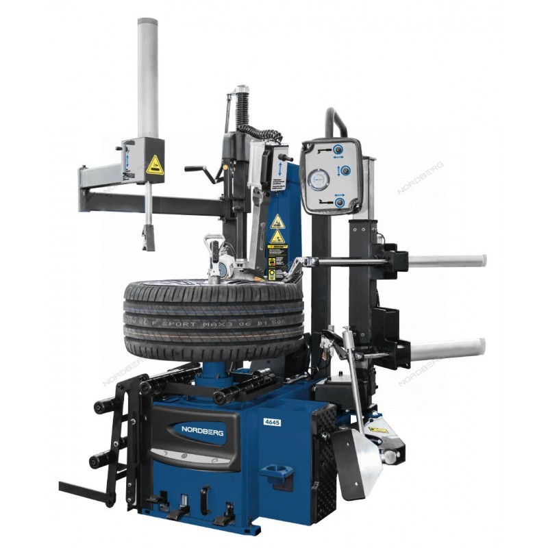 NORDBERG 4645 — шиномонтажный станок, автоматический.ФУНКЦИОНАЛПредназначен для монтажа, демонтажа и подкачки шин легковых автомобилей и легких грузовиков. Работает с дисками 13–28 дюймов, а также со всеми типами шин: стандартными, низкопрофильными, Run-Flat, камерными и бескамерными.ПРЕИМУЩЕСТВАСовмещенная система центрального зажима и лифта обеспечивает быстроту и простоту процесса размещения и центрирования колеса на фланце станка, что полностью исключает необходимость удерживать его на весу во время установки гайки;Инверторный двигатель с плавной регулировкой скорости педалью;Отжимной цилиндр с внутренней пружиной обеспечивает помощь в обратном ходе и работает практически бесшумно;Легкость в обслуживании благодаря размещению большинства компонентов управления станка на выдвижной панели;Отжимная лопатка оснащена пластиковой накладкой, что позволяет избежать царапин на дисках при отжиме борта;Набор вспомогательных систем с пневматическим приводом;Удобная ручка для опускания монтажной головы;Кнопка управления отжимом на рукоятке отжимной лопатки вместо педали, аналог ERGO CONTROL;Простая сборка устройства необходимо лишь установить три пневмоцилиндра.NORDBERG 4645 — выбор для профессионалов, стремящихся к максимальной эффективности и высокому качеству работы. Идеально для шиномонтажных мастерских, автосервисов и СТО.
