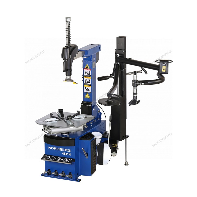 NORDBERG 4641N— автоматический двухскоростной шиномонтажный станок. Применяется на СТО, в автосервисах и шиномонтажных мастерских.ФУНКЦИОНАЛПредназначено для монтажа, демонтажа и накачивания шин легковых автомобилей с колёсными дисками. Оснащён вспомогательной стойкой с пневмоприводом для удобства работы с трудными колёсами.ПРЕИМУЩЕСТВАДиапазон зажима: 12–24″ снаружи, 14–26″ внутри — универсальность применения;Максимальный диаметр колеса — 1140 мм, ширина до 355,6 мм — подходит для большинства современных авто;Скорость вращения стола: 6/12 об/мин — две скорости для разных задач;Усилие вращения: до 1500 Нм — работа с жёсткими шинами;Усилие прижима бортотжимателя — 2500 кг — эффективно даже с тяжёлыми шинами;Вспомогательная система «третья рука» в комплекте — облегчает работу с низкопрофильными и жёсткими шинами;Рабочее давление воздуха: 8–10 бар — обеспечивает стабильную работу пневмосистемы и всех рабочих механизмов.УДОБСТВО ИСПОЛЬЗОВАНИЯНаклоняемая колонна — упрощает установку колеса;Автоматическая установка головки с зазором к ободу — предотвращает повреждения;Поворотная платформа с четырьмя двухсторонними зажимными кулачками — надёжная фиксация без дополнительных приспособлений;Головка классического типа «утка» установлена на подвижной колонне с наклоном назад — обеспечивает свободный доступ к колесу и автоматически устанавливает зазор с диском при нажатии кнопки управления;Пневмоуправляемые вспомогательные рычаги — удобная работа с жёсткими шинами.NORDBERG 4641N— это надёжный выбор для интенсивной профессиональной эксплуатации, обеспечивающий высокую производительность и безопасность работы с различными типами шин.
