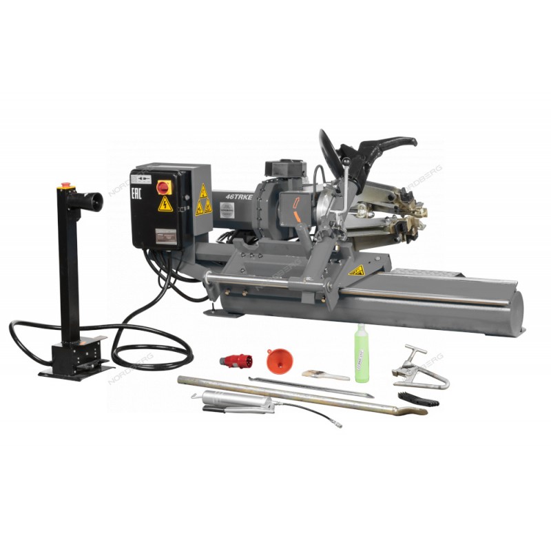 NORDBERG 46TRKE(G) — профессиональный шиномонтажный станок для грузового транспорта.ФУНКЦИОНАЛПредназначен для монтажа и демонтажа шин грузовых автомобилей и автобусов.ПРЕИМУЩЕСТВАПодходит для колес шириной до 780 мм и весом до 570 кг, что делает его универсальным для грузовых автомобилей и автобусов.Станок работает с дисками от 14" до 26" и колесами диаметром до 1600 мм;Оборудован мощной гидравлической системой и двумя электродвигателями для эффективного выполнения шиномонтажных работ.Насос 1,5 кВт обеспечивает стабильную работу привода, а редукторный двигатель 1,8 кВт гарантирует плавное вращение колеса во время работы.Уровень шума менее 70 дБ, что создает комфортные условия для оператора.Контрольный клапан предотвращает падение колеса при повреждении гидросистемы.Двойное уплотнение стопорного клапана исключает неконтролируемое опускание ведущей оси.Предохранительный клапан «130 бар ± 5%» защищает систему от перегрузок.Устройство защитного отключения «УЗО» предотвращает перегрев и выход из строя двигателя.Усиленные направляющие и устойчивая платформа обеспечивают долговечность станка даже при интенсивной эксплуатации.УДОБСТВО ИСПОЛЬЗОВАНИЯВыносной пульт управления: позволяет оператору работать с любой удобной позиции, снижая физическую нагрузку.Гидравлический привод с плавным ходом: обеспечивает точность операций и исключает рывки при работе.Компактные габариты 1950×1600 мм удобен для установки даже в небольших мастерских.Простая установка: не требует жесткого крепления к полу, но рекомендуется установка на ровную поверхность для стабильной работы.Обеспечивает надежную фиксацию колес, безопасную работу с большими нагрузками и точную регулировку параметров.Автоматическая фиксация колеса: предотвращает его смещение во время монтажа и демонтажа.КОМПЛЕКТАЦИЯШиномонтажный станок – 1 шт;Переносной блок управления – 1 шт;Гидронасос привода – 1 шт;Монтажная лопатка – 1 шт;Зажим ручной – 1 шт;Комплект уплотнительных колец – 1 шт;Воронка пластиковая – 1 шт;Кисть для монтажной пасты – 1 шт;Предохранители плавкие – 3 шт;Электрический разъем для подключения в сеть – 1 шт;Пластиковые защитные накладки – 4 шт;Инструкция по эксплуатации – 1 шт.NORDBERG 46TRKE(G) — надежное и мощное решение для шиномонтажа грузового транспорта.