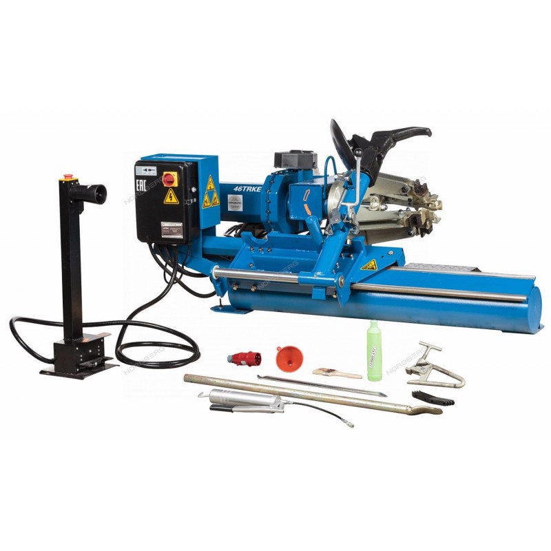 NORDBERG 46TRKE(B) — профессиональный шиномонтажный станок для грузового транспорта.ФУНКЦИОНАЛПредназначен для монтажа и демонтажа шин грузовых автомобилей и автобусов.ПРЕИМУЩЕСТВАПодходит для колес шириной до 780 мм и весом до 570 кг, что делает его универсальным для грузовых автомобилей и автобусов.Станок работает с дисками от 14" до 26" и колесами диаметром до 1600 мм;Оборудован мощной гидравлической системой и двумя электродвигателями для эффективного выполнения шиномонтажных работ.Насос 1,5 кВт обеспечивает стабильную работу привода, а редукторный двигатель 1,8 кВт гарантирует плавное вращение колеса во время работы.Уровень шума менее 70 дБ, что создает комфортные условия для оператора.Контрольный клапан предотвращает падение колеса при повреждении гидросистемы.Двойное уплотнение стопорного клапана исключает неконтролируемое опускание ведущей оси.Предохранительный клапан «130 бар ± 5%» защищает систему от перегрузок.Устройство защитного отключения «УЗО» предотвращает перегрев и выход из строя двигателя.Усиленные направляющие и устойчивая платформа обеспечивают долговечность станка даже при интенсивной эксплуатации.УДОБСТВО ИСПОЛЬЗОВАНИЯВыносной пульт управления: позволяет оператору работать с любой удобной позиции, снижая физическую нагрузку.Гидравлический привод с плавным ходом: обеспечивает точность операций и исключает рывки при работе.Компактные габариты 1950×1600 мм удобен для установки даже в небольших мастерских.Простая установка: не требует жесткого крепления к полу, но рекомендуется установка на ровную поверхность для стабильной работы.Обеспечивает надежную фиксацию колес, безопасную работу с большими нагрузками и точную регулировку параметров.Автоматическая фиксация колеса: предотвращает его смещение во время монтажа и демонтажа.КОМПЛЕКТАЦИЯШиномонтажный станок – 1 шт;Переносной блок управления – 1 шт;Гидронасос привода – 1 шт;Монтажная лопатка – 1 шт;Зажим ручной – 1 шт;Комплект уплотнительных колец – 1 шт;Воронка пластиковая – 1 шт;Кисть для монтажной пасты – 1 шт;Предохранители плавкие – 3 шт;Электрический разъем для подключения в сеть – 1 шт;Пластиковые защитные накладки – 4 шт;Инструкция по эксплуатации – 1 шт.NORDBERG 46TRKE(B) — надежное и мощное решение для шиномонтажа грузового транспорта.