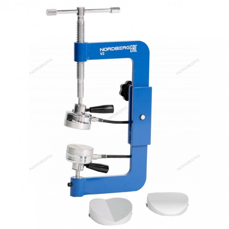 NORDBERG V3— профессиональный настольный вулканизатор для ремонта шин грузового автотранспорта. Применяется в шиномонтажных мастерских, автосервисах и на предприятиях с собственным автопарком.ФУНКЦИОНАЛПредназначен для восстановления повреждений шин методом горячей вулканизации. Обеспечивает надёжное прижатие ремонтного материала и равномерный прогрев участка повреждения до заданной температуры.ПРЕИМУЩЕСТВАПодходит для шин типоразмеров от 8.25-20 до 12.00-20, включая 9R-12R — охватывает широкий спектр коммерческого автотранспорта;Общая мощность 1000 Вт — быстрый выход на рабочую температуру;Температурный диапазон 150–165 °C — оптимальные параметры для надёжной вулканизации;Сила сжатия до 50 кг — обеспечивает качественное прилегание заплат и устойчивый результат;В комплекте 6 металлических нагревательных головок — для ремонта различных зон шины;Автоматический контроль температуры — предотвращает перегрев и упрощает контроль процесса.УДОБСТВО ИСПОЛЬЗОВАНИЯКомпактный настольный формат — удобно размещается даже в условиях ограниченного пространства;Простое управление прижимными и нагревательными элементами;Быстрый прогрев: готов к работе за 10–15 минут, цикл вулканизации — от 5 минут;Возможность жёсткой фиксации на рабочем столе — дополнительная устойчивость в процессе ремонта.КОМПЛЕКТАЦИЯВулканизатор V3 – 1 шт;Металлические нагревательные насадки – 6 шт;Резиновая насадка – 1 шт;Паспорт-инструкция – 1 шт.NORDBERG V3— надёжное, удобное и эффективное оборудование для профессионального шинного ремонта.