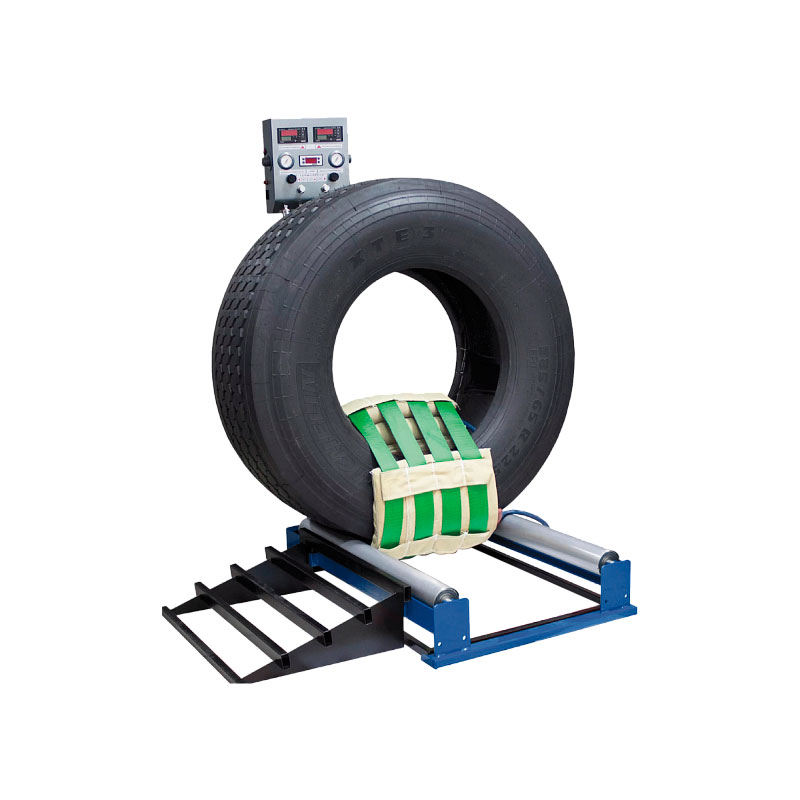 Грузовой вулканизатор ТП-800 применяется для ремонта на беговой дорожке, плече и боковине шин с посадочным диаметром от 16" до 29" и шириной профиля от 225мм до 800мм. Габариты и усиленная конструкция этого тяжелого вулканизатора позволяют производить ремонт сельскохозяйственных и карьерных шин. Контроль за работой вулканизатора осуществляется с помощью пульта управления, который позволяет запрограммировать время вулканизации, рабочую температуру и давление в пневмоподушках. По желанию заказчика ТП-800 может быть укомплектован пультом управления на четыре порта, что позволяет производить ремонт одновременно 2-х шин. Вулканизатор оснащается складными упорами для большей устойчивости и легкой съемной лестницей для установки шины.