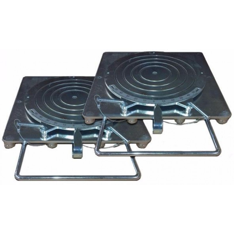 Комплект поворотных платформ используется при выполнении работ на стендах сход-развал для поперечной разгрузки передних колес автомобиля.