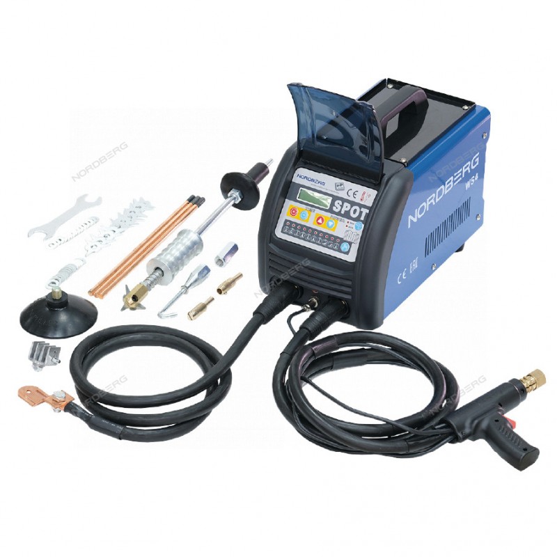 Сварочный аппарат NORDBERG WS4ФУНКЦИОНАЛПозволяет быстро и безопасно восстанавливать форму кузовных деталей, минимизируя повреждения соседних участков, и отлично подходит для кузовных мастерских, СТО и сервисных центров.ПРЕИМУЩЕСТВАРабочий цикл — 10 минут при номинальной нагрузке, с защитой от перегрева и автоматическим отключением;ЖК-дисплей и панель управления — простая настройка времени и силы тока;Несколько режимов работы: дуговая сварка, приварка шайб и стержней, работа обратным молотком, нагрев угольным электродом, приварка волнистой проволоки, выпрямление вмятин вакуумным выпрямителем;Эргономичный сварочный пистолет с цанговым зажимом;Возможность быстрой смены насадок и адаптеров под разные задачи;Удобные ручки для переноса — комфорт при транспортировке.