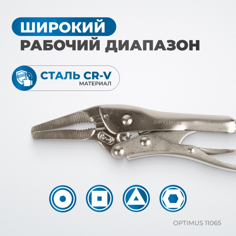 Зажимные клещи с фиксатором OPTIMUS предназначены для надежной фиксации деталей и широко используются как в мастерских, так и на производстве. Изготовлены из прочных материалов, устойчивых к деформациям, что позволяет работать с высокими усилиями и значительно облегчает последующую обработку деталей.