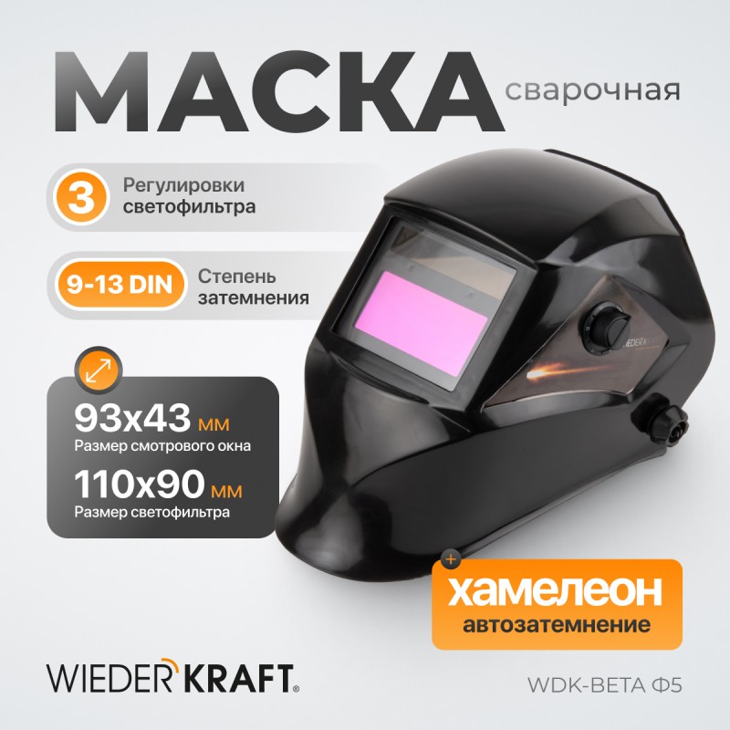 Сварочная маска хамелеон, окно 90x43мм, солнечная батарея, Li-ion аккумулятор, DIN 9-13 WDK-Beta Ф5