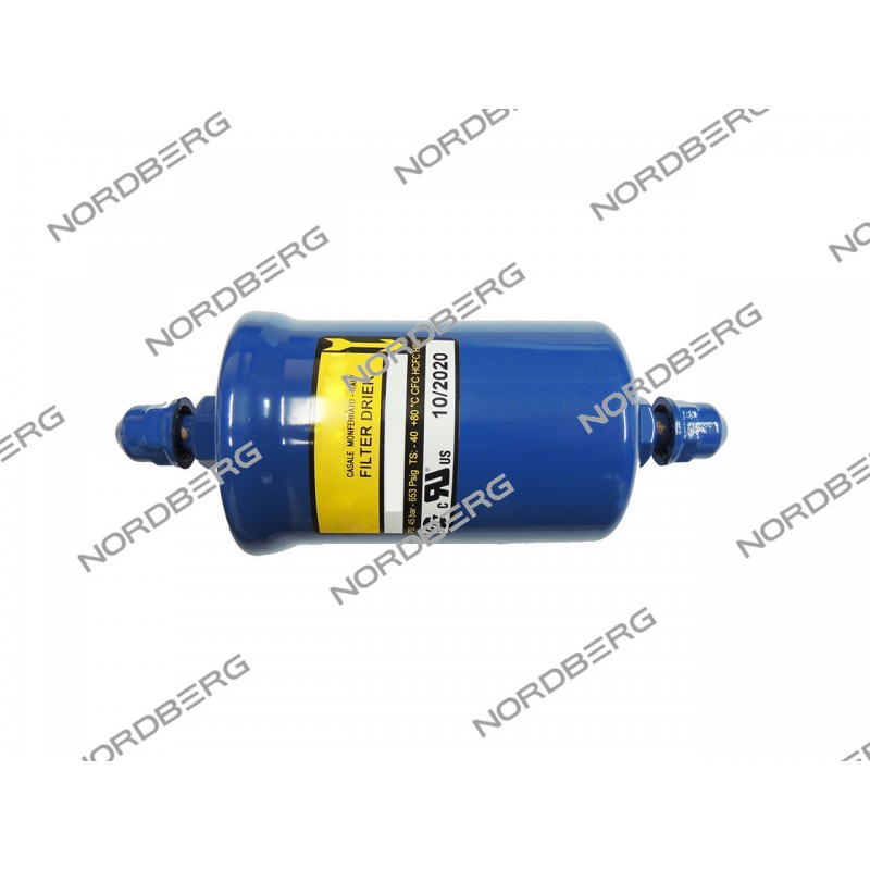 Фильтр для автоматических станций заправки автокондиционеров NORDBERG NF12S, NF13, NF13P, NF23P, NF26P, NF22L поглощает влагу и предохраняет систему от засорения твердыми частицами.Коррозийно стойкое покрытиеРезьбовые соединения M1/4" SAE защищены пластиковыми заглушками.