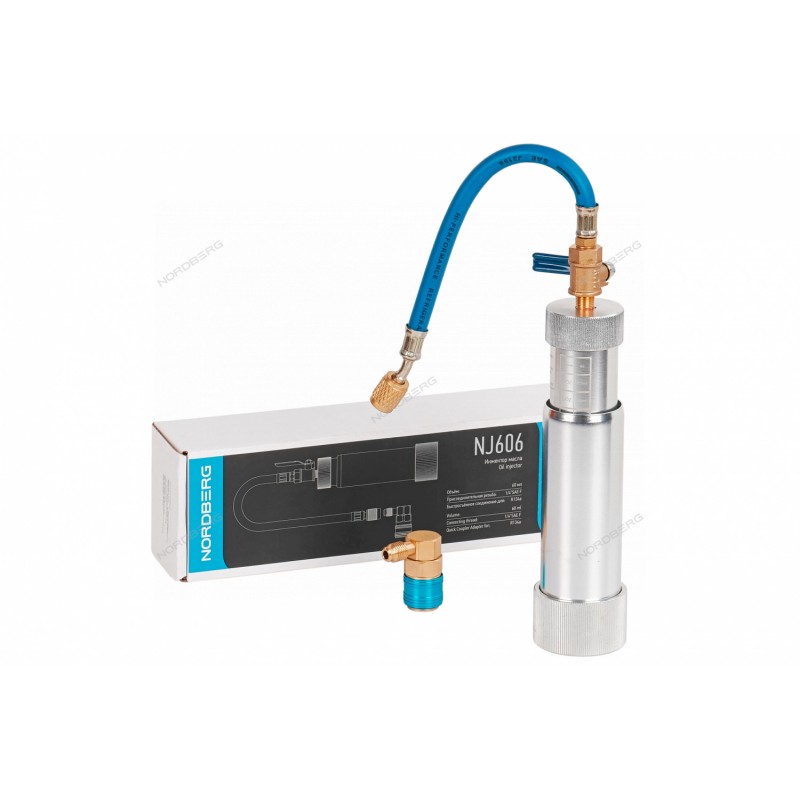 Инжектор масла NORDBERG NJ606 – вспомогательное оборудование для обслуживания систем кондиционирования транспорта в автосервисах или СТО.ФУНКЦИОНАЛПредназначен для заправки нужного количества масла или УФ-красителя в систему кондиционирования при ее обслуживании и диагностике.Инжектор подключается к порту низкого давления кондиционера через быстросъемную муфту.Необходимое количество масла вводится вручную посредством вращения инжектора по часовой стрелке.ПРЕИМУЩЕСТВАОбъем 60 млКонтроль заправки масла или УФ-красителяРазборная конструкцияКорпус цилиндра выполнен из прочного алюминиевого сплаваСоединительный штуцер произведен из латунного сплаваУДОБСТВО ИСПОЛЬЗОВАНИЯПростое быстрое подключение и удобный контроль за точностью заправки масла.Заправочный цилиндр NORDBERG NJ606 повысит эффективность и качество обслуживания системы кондиционирования автомобиля.