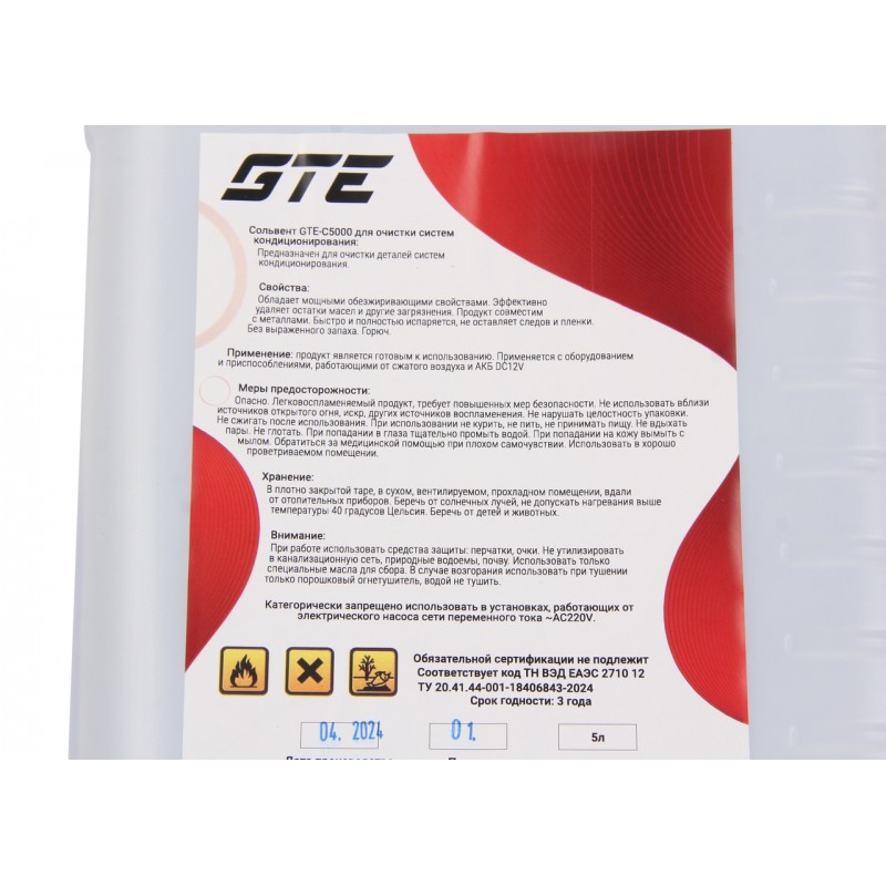 Сольвент GTE-C5000 для очистки систем кондиционирования: Предназначен для очистки деталей систем кондиционирования.