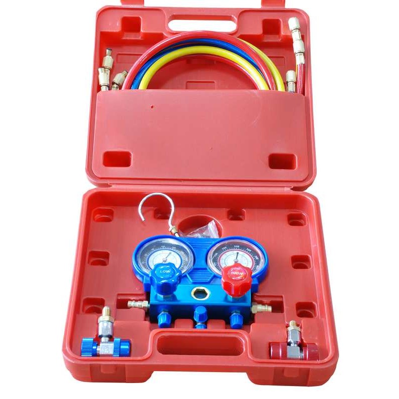 Измеритель давления хладагента кондиционера (R134a) MHR04107. Высокое давление: 0~500psi, 0~35kg/cm2,Низкое давление: 0~120psi, 1~8.5kg/cm2,Вакуум: 0~30in/Hg. Назначение:Измеритель давления хладагента позволяет измерить давление в системе кондиционирования воздуха и обнаружить утечки, места и причины падения давления. Комплект поставки:- регулируемый 1107 присоединитель со смотровыми окошками,- R-134a коллектор с 60" цветными шлангами (3 штуки),- инструкция,- кейс для хранения и переноски.