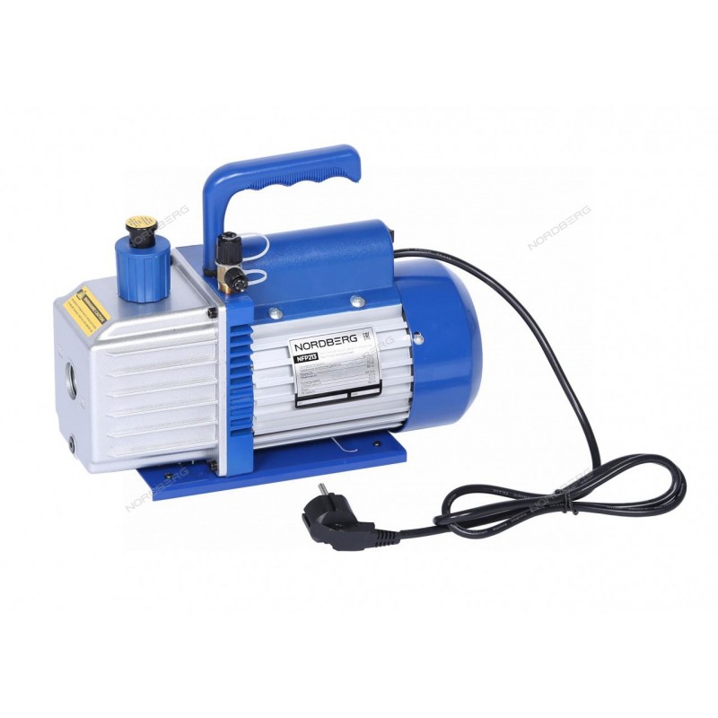 NORDBERG NFP213 — двухступенчатый вакуумный насос для профессионального применения. Используется в сервисном обслуживании холодильных и кондиционерных систем, обеспечивая качественное вакуумирование перед заправкой хладагентом.ФУНКЦИОНАЛПредназначен для создания глубокого вакуума в замкнутом контуре климатического оборудования, эффективно удаляя влагу и воздух.ПРЕИМУЩЕСТВАДвухступенчатая конструкция обеспечивает более глубокий вакуум по сравнению с одноступенчатыми насосами, что значительно улучшает качество работы системы;Производительность 128 л/мин позволяет быстро откачивать воздух, сокращая время обслуживания;Предельное остаточное давление 0,3 Па гарантирует эффективное вакуумирование, исключая риск остатков влаги в системе;Мощность двигателя 375 Вт обеспечивает стабильную и надежную работу при высоких нагрузках;Объем масла 360 мл снижает необходимость частой замены, продлевая срок службы устройства;Присоединительный штуцер SAE 1/4" и SAE 3/8" делает насос совместимым с большинством сервисного оборудования;Компактные размеры 320×134×232 мм позволяют легко разместить насос в рабочей зоне;Вес 11,8 кг обеспечивает устойчивость и удобство перемещения.УДОБСТВО ИСПОЛЬЗОВАНИЯПростота управления: удобная кнопка включения и индикатор работы обеспечивают легкость эксплуатации;Легкий контроль уровня масла: смотровое стекло позволяет следить за количеством масла без разборки устройства;Минимальное техническое обслуживание: замена масла требуется не чаще 1 раза в 6 месяцев;Защита от перегрева: система охлаждения предотвращает перегрев двигателя при длительной работе;Эргономичная ручка: удобна для переноски и транспортировки;Шумоподавляющий глушитель снижает уровень шума и предотвращает выброс масляного тумана, создавая комфортные условия работы;Прочный литой алюминиевый корпус защищает от механических повреждений и коррозии;Площадка с виброгасящими опорами.КОМПЛЕКТАЦИЯВакуумный насос NORDBERG NFP213 – 1 шт;Смазочное масло 330 мл – 1 шт;Смазочное масло 230 мл – 1 шт;Бутылки с маслом 230 и 330 мл – 2 шт; Инструкция по эксплуатации – 1 шт.NORDBERG NFP213 — мощный и надежный вакуумный насос для профессионального использования в сфере кондиционирования и холодильного оборудования.