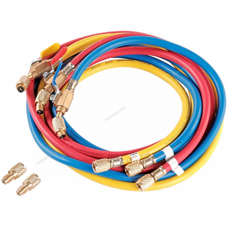 Шланг заправочный NORDBERG NFH18 предназначен для работ по обслуживанию автомобильных систем кондиционирования воздуха, а также различных климатических и холодильных систем.Используется при заправке автомобильных кондиционеров фреонами R12, R22, R134A, R407C, R404A, R507.Заправочные шланги NORDBERG NFH18 выполнены из материала HNBR: гидрированный бутадиен-нитрильный эластомер, обладающий повышенной маслобензостойкостью и морозоустойчивостью.