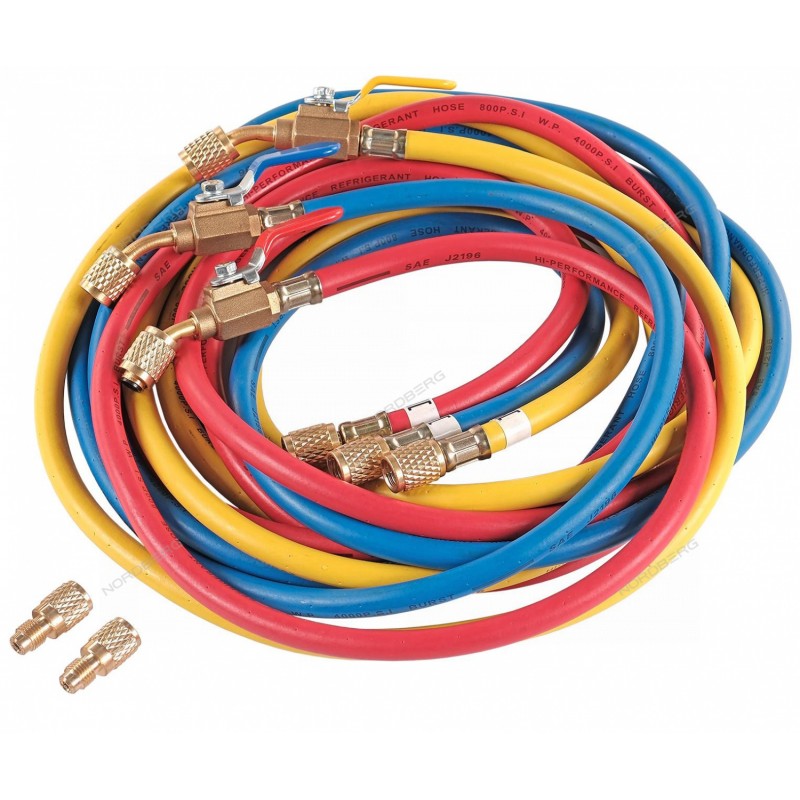 Шланг заправочный NORDBERG NFH30 предназначен для работ по обслуживанию автомобильных систем кондиционирования воздуха, а также различных климатических и холодильных систем.Используется при заправке автомобильных кондиционеров фреонами R12, R22, R134A, R407C, R404A, R507.Заправочные шланги NORDBERG NFH30 выполнены из материала HNBR: гидрированный бутадиен-нитрильный эластомер, обладающий повышенной маслобензостойкостью и морозоустойчивостью.
