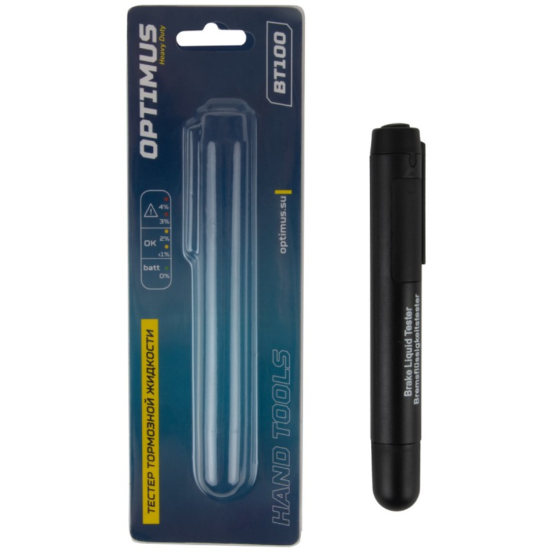 Тестер качества тормозной жидкости Optimus HD BT100 используется в автомастерских и автовладельцами для определения уровня влаги в тормозной жидкости. Световая индикация на корпусе изделия показывает процентное содержание воды. Удобный корпус с зажимом и защитный колпачок для удобства эксплуатации. Устройство работает от элемента питания типа AAA (приобретается отдельно).